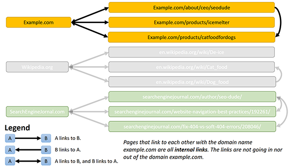 2、內部鏈接是您自己網站內頁面之間的鏈接。搜索引擎通過查看域名來確定這一點,如果頁面上的鏈接鏈接到同一個域內的其他頁面,則將其視為內部鏈接。如果出于某種原因,您的網站建立了多個域名,搜索引擎會將其視為外部鏈接。