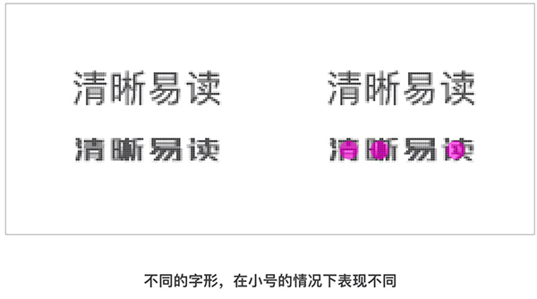 C、字形的場景適應(yīng):由于不同的字形給用戶帶來不同的感受,因場景需要,在一定情況下我們會(huì)選擇自定義字體。當(dāng)我們選擇不同的字體時(shí),需考慮字體在產(chǎn)品內(nèi)不同模板下的易讀性問題。