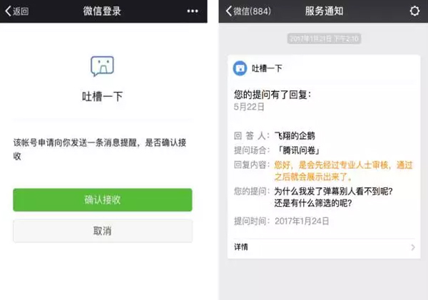 公眾號和微信內網頁,用戶也可訂閱消息提醒。在未關注公眾號時,可在服務通知中收到一條消息提醒,如果已關注公眾號,則可以在公眾號會話內收到消息提醒。