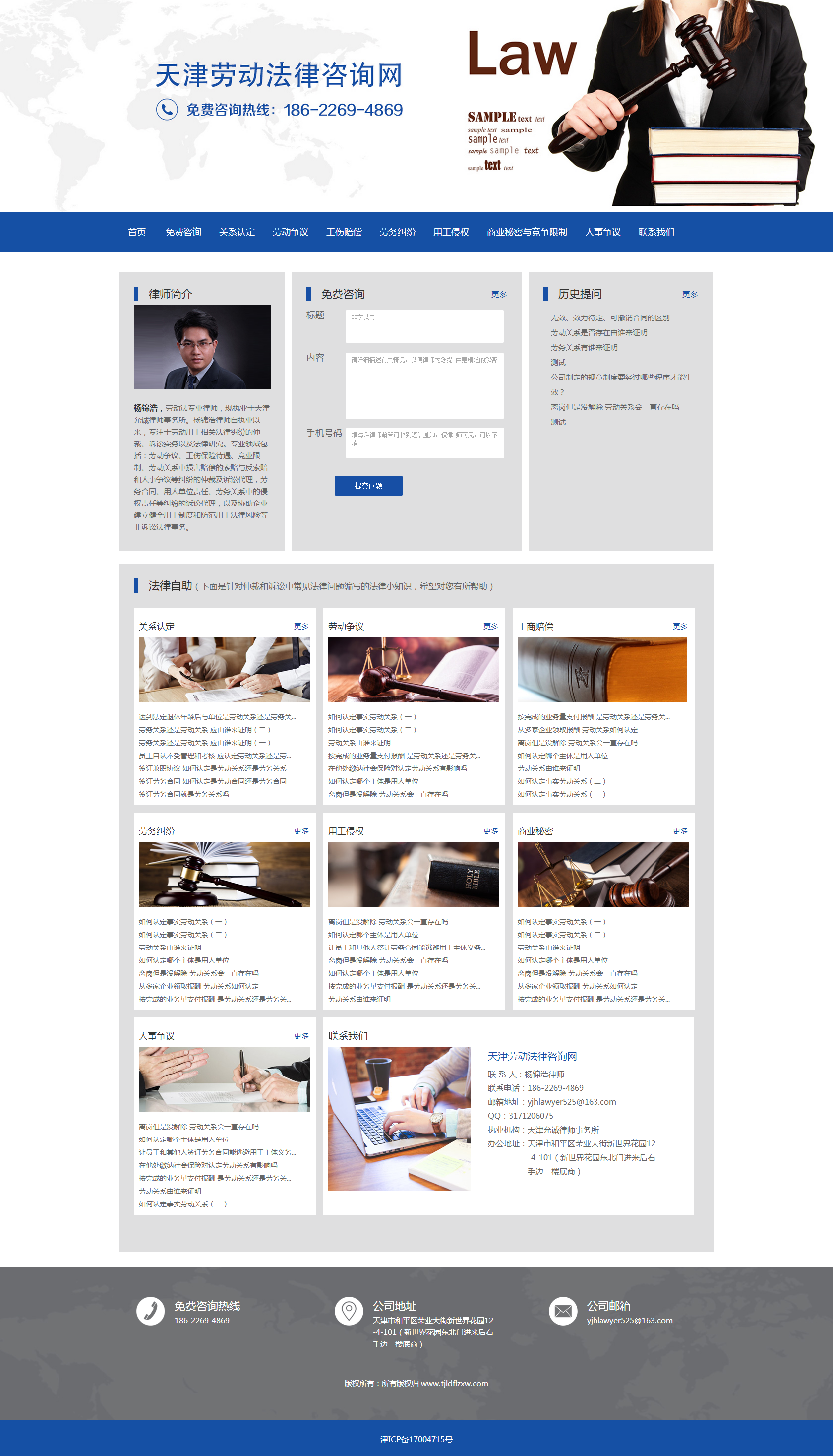 天津勞動法律咨詢網(wǎng),是由楊錦浩律師創(chuàng)辦的區(qū)域性法律咨詢類網(wǎng)站,旨在為廣大網(wǎng)友提供勞動和用工方面免費的法律問題解答,以及分享與勞動仲裁、訴訟相關(guān)的法律知識和仲裁、訴訟經(jīng)驗,使得廣大網(wǎng)友在自主進行勞動仲裁和訴訟活動時獲得相應(yīng)的法律幫助。